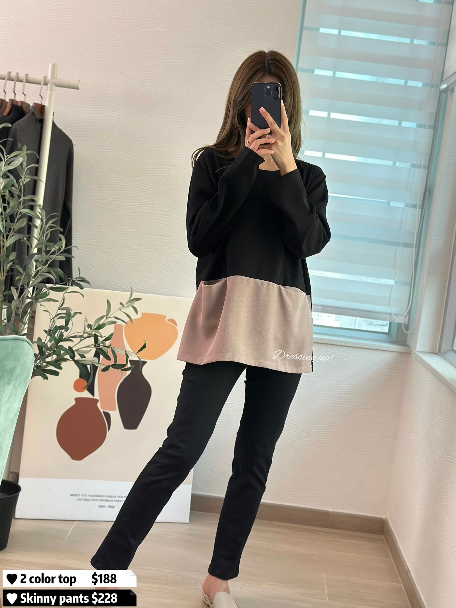 簡約大方|雙色兩袋上衣