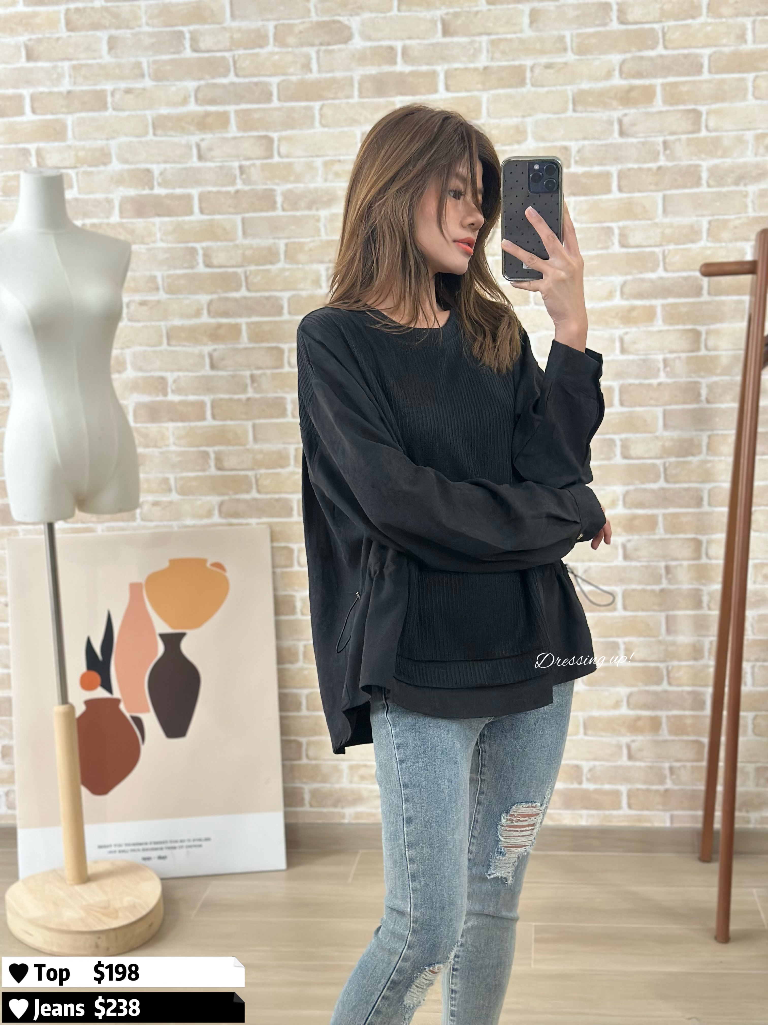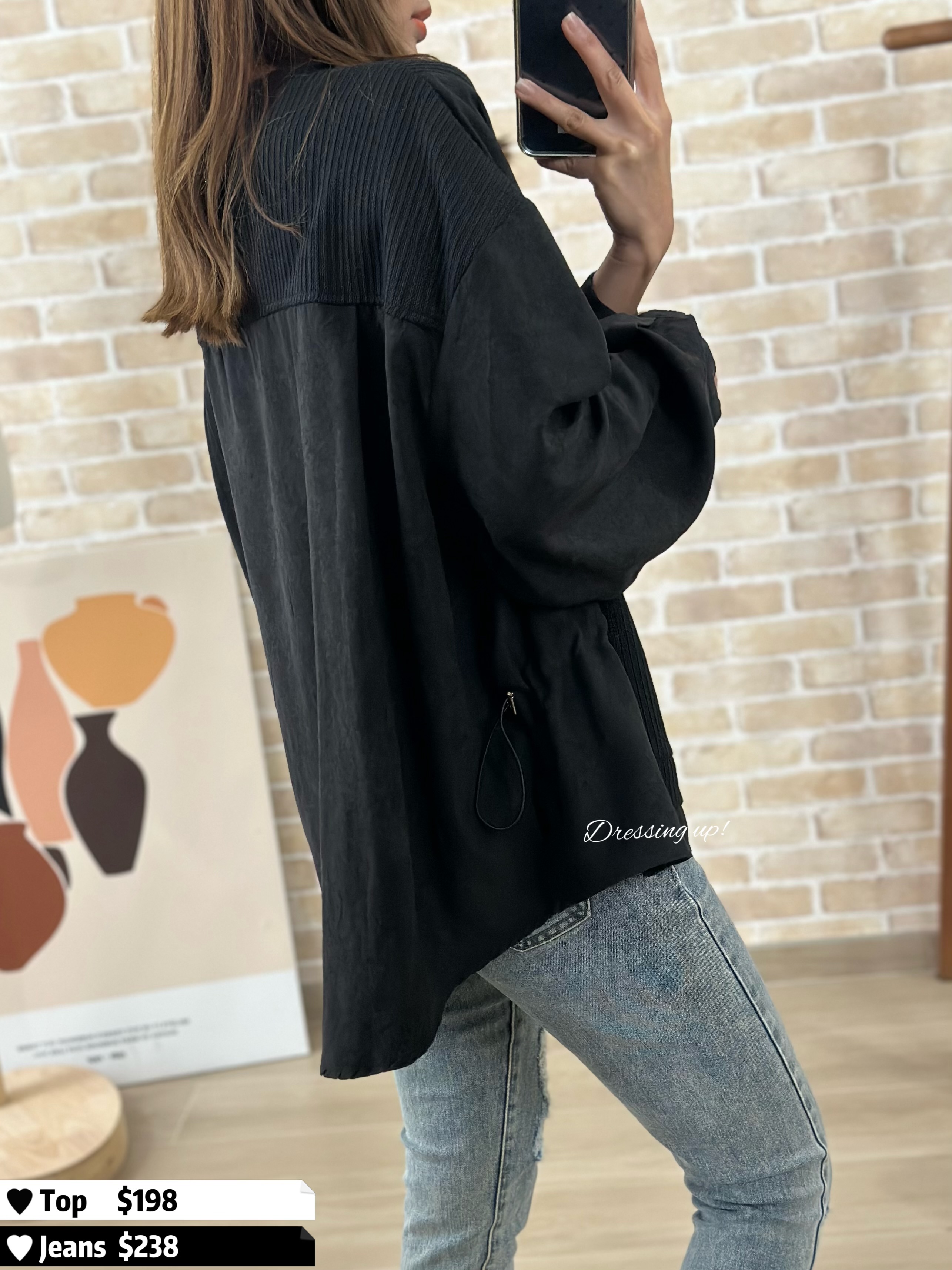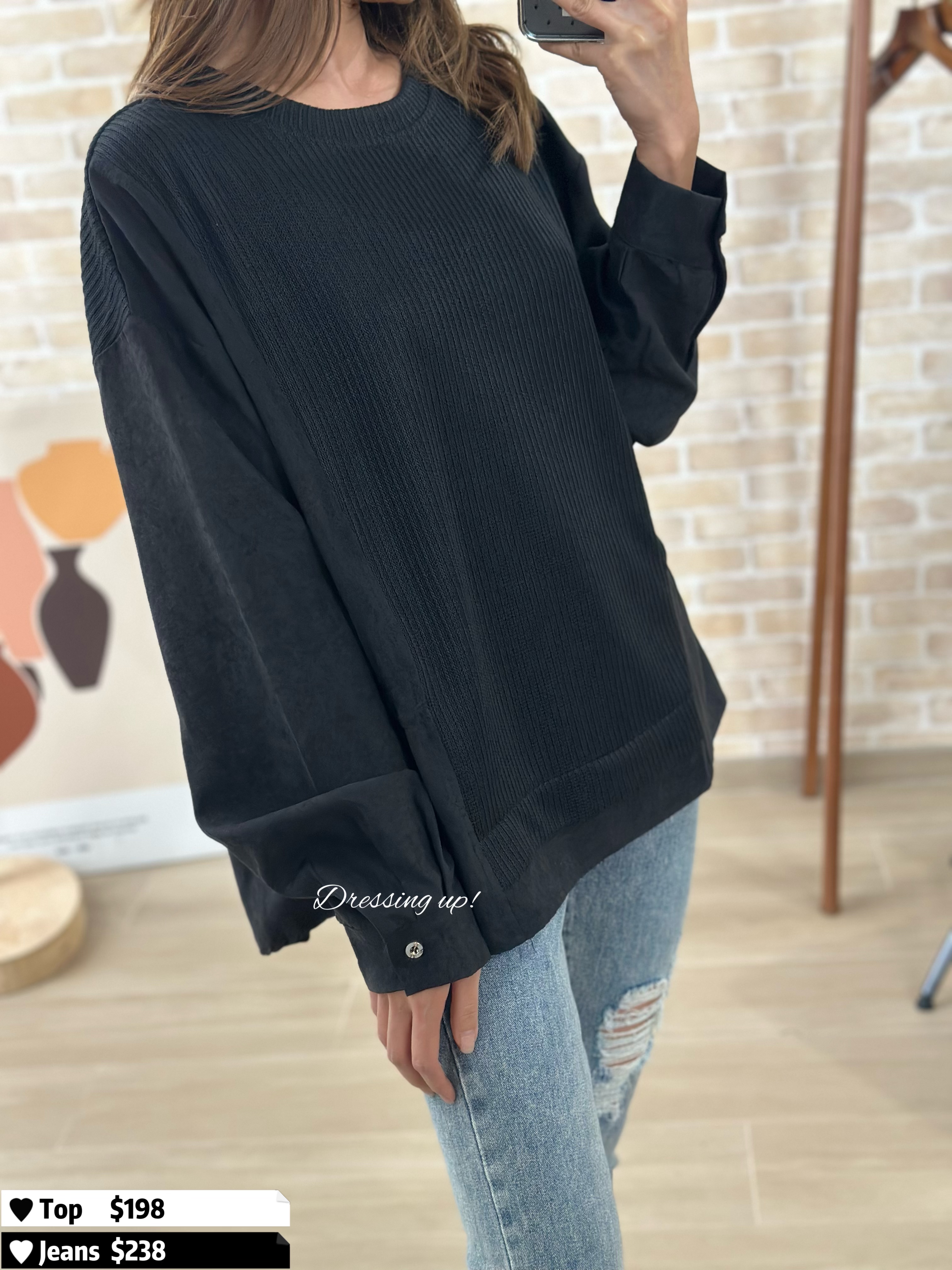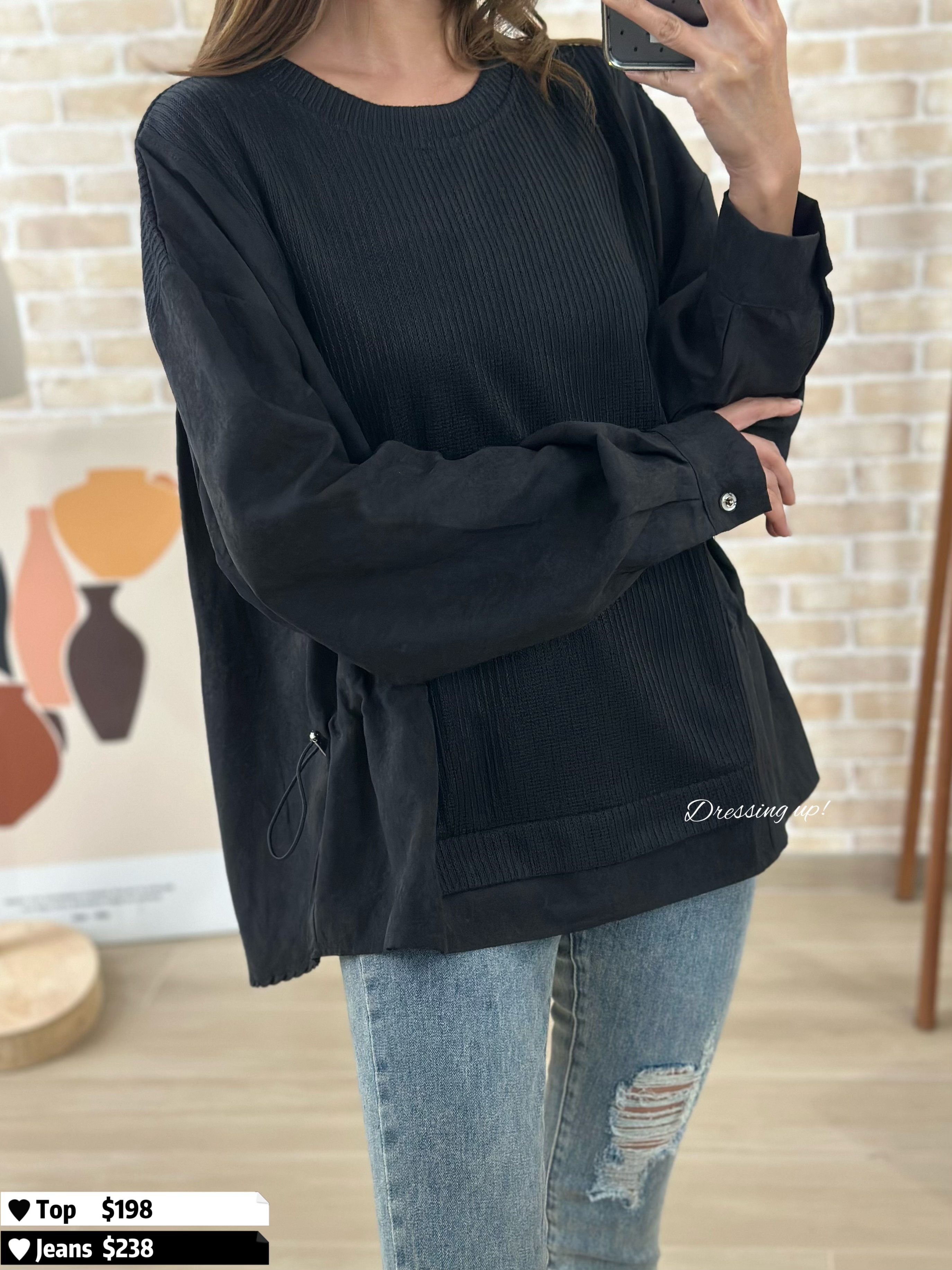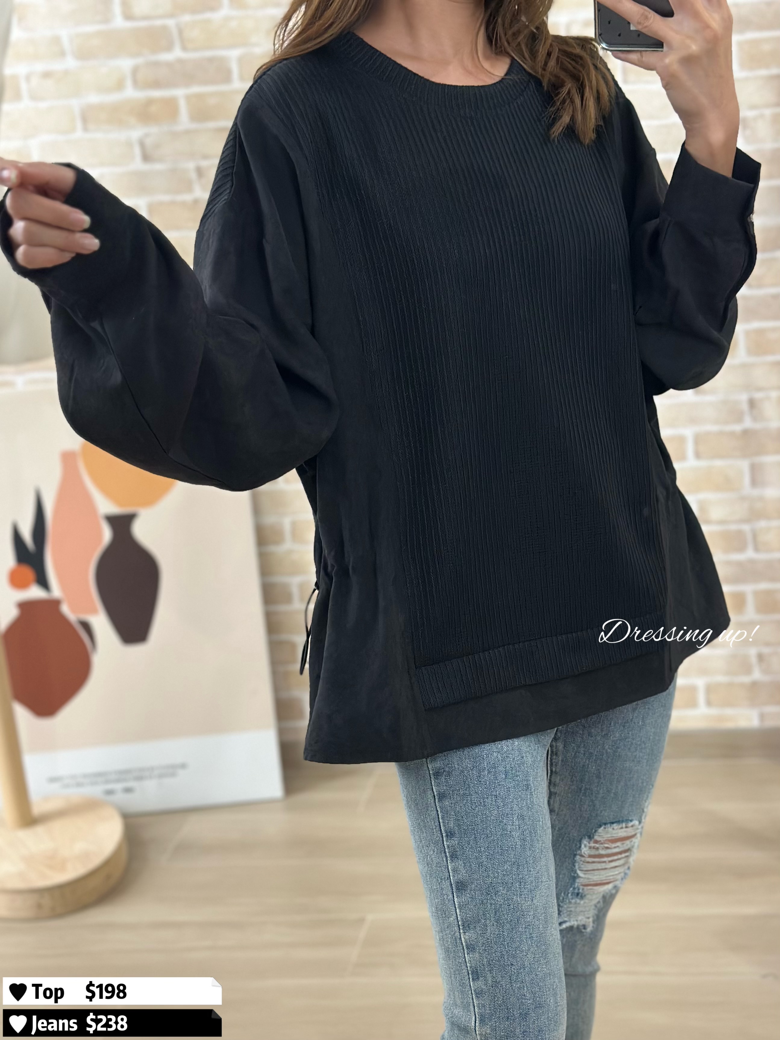 #不單調全黑 🔍 黑色𝐅𝐚𝐧𝐬有福了 😆😆 黑色織紋上衣 薄絨料手袖,無全黑咁單調 重點係返工都著得喎! 腰位52吋、夠簡單、不花巧 專為有肉地客人而設 數量唔多,鍾意一定要搶 😌👍🏻 🆕 不單調全黑|黑色織紋上衣 🆕 胸50吋/腰52吋/前短後長60cm 71cm
