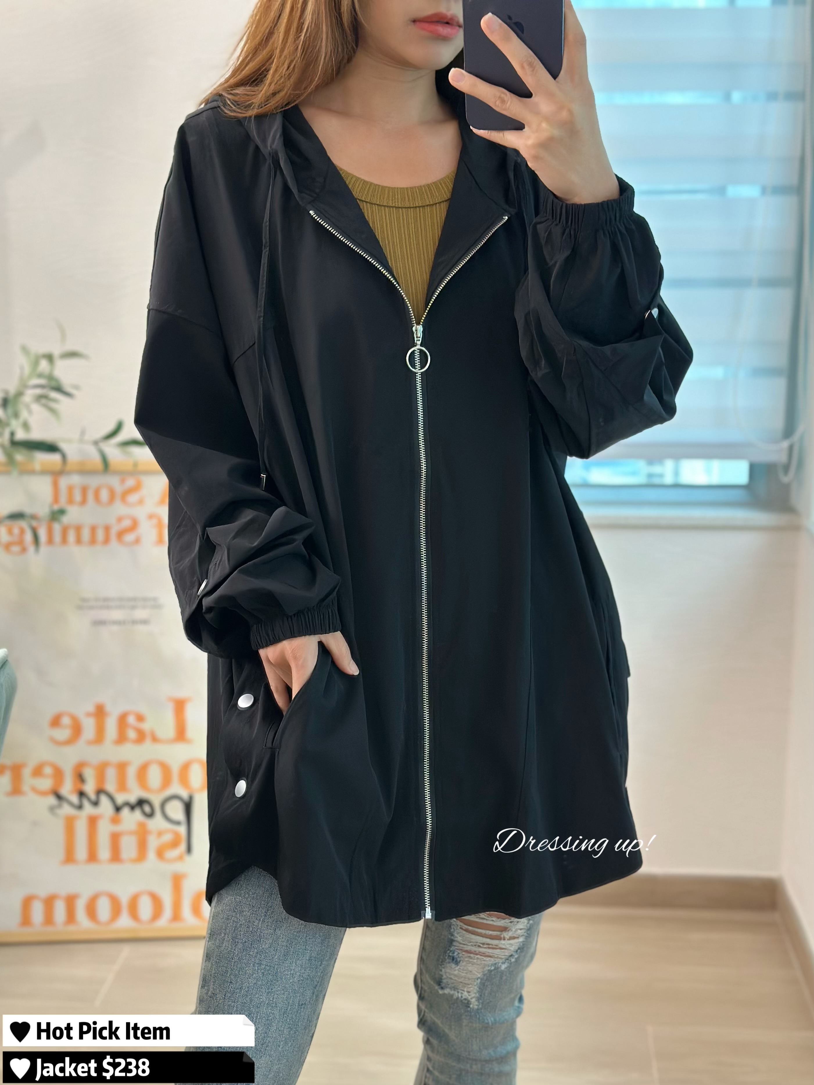 #今期必搶 🥇 未出相已經熱賣過百件 😂✌🏻 簡單有型!有帽拉鍊長外套 全件輕薄速乾 ~~ 隨便𝐇𝐞𝐚襯已經好有款! 全件免熨料、兩側有褸袋 剪裁易𝐂𝐚𝐫𝐫𝐲 👌🏻🥰 保證高質!真心推介! 🆕 今期必搶|速乾有帽長外套 🆕 胸56吋/腰54吋/前短後長73cm 82cm