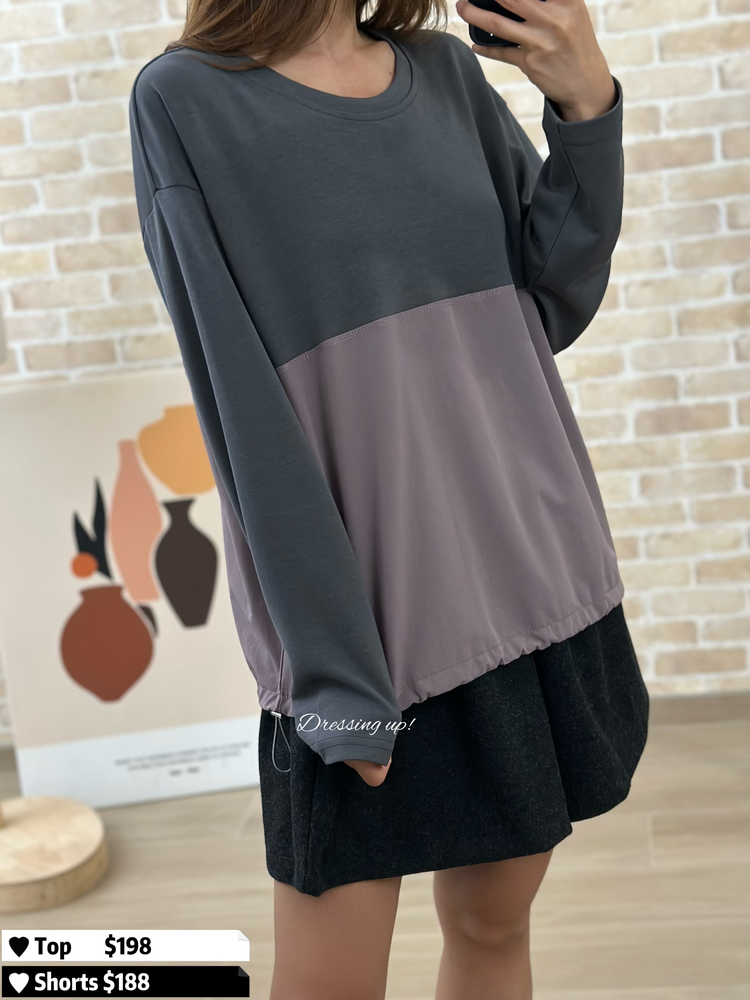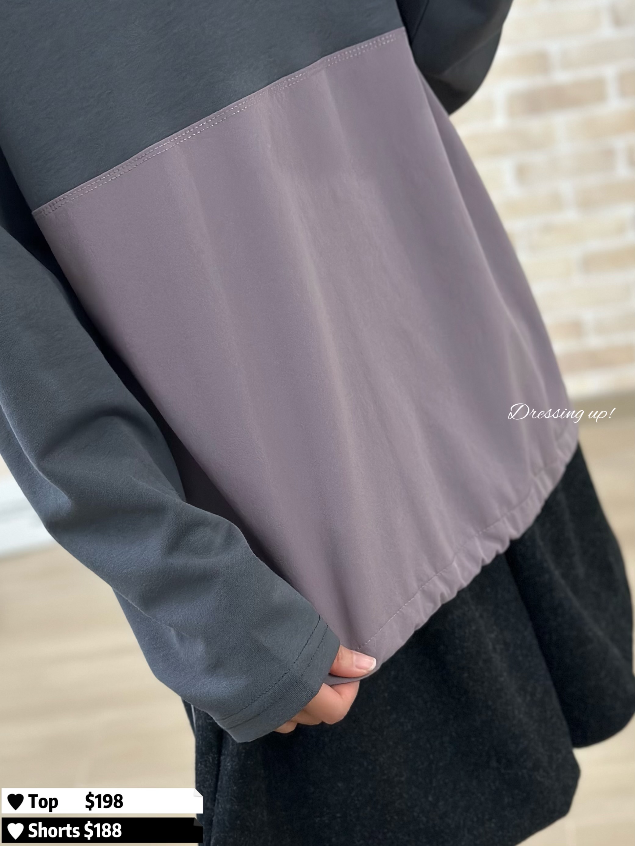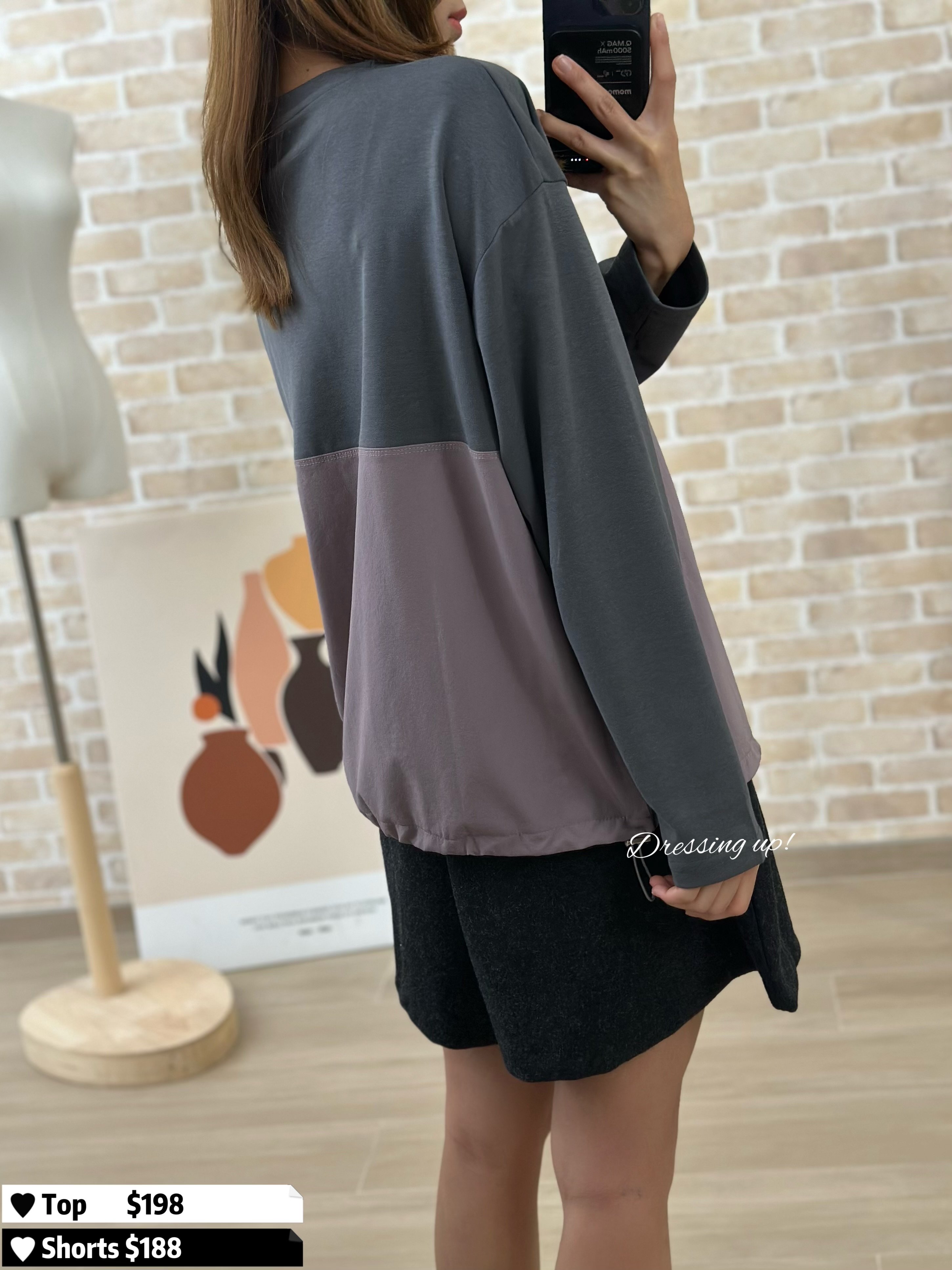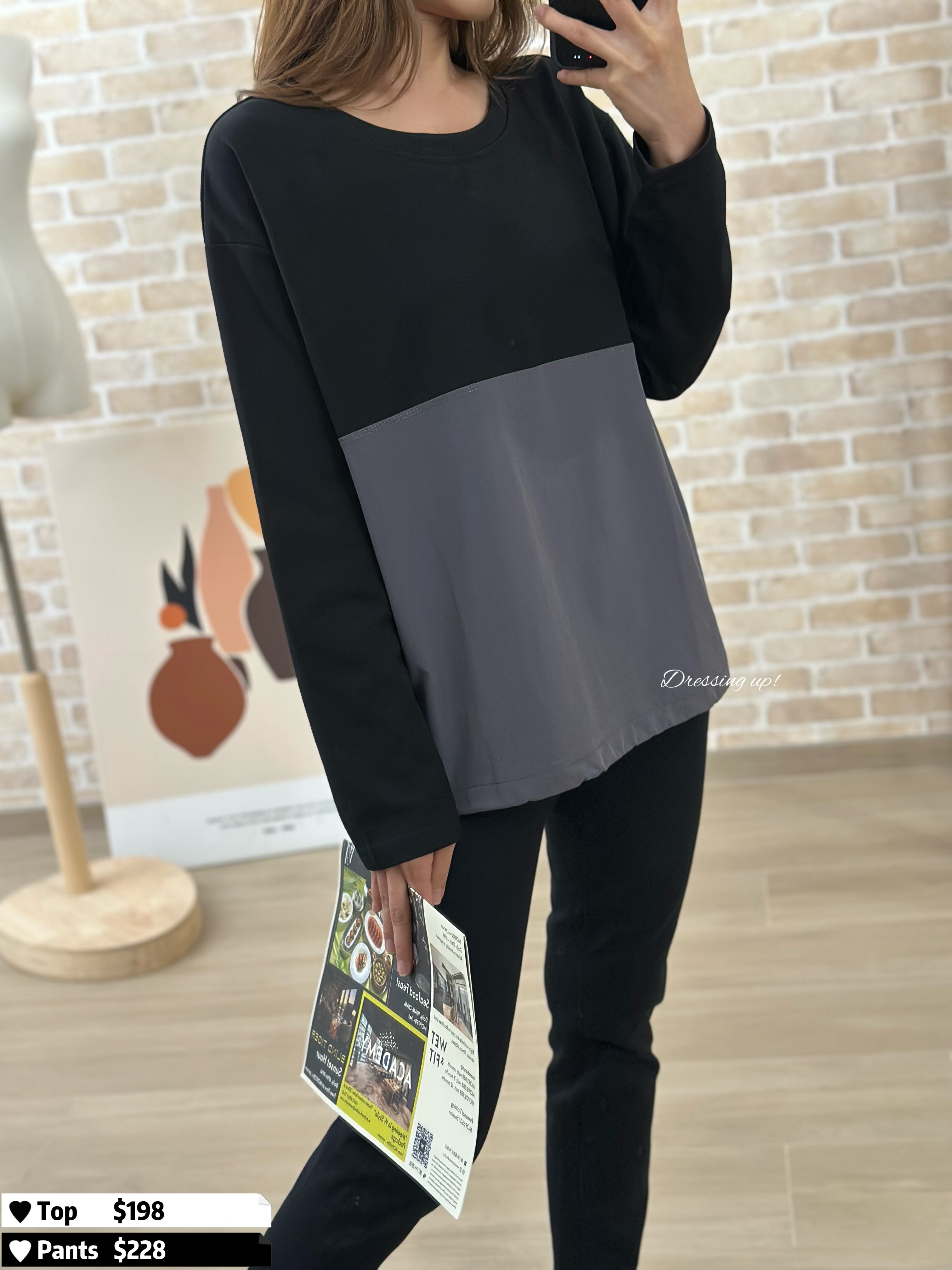 #𝗖𝗣值超高 🔝 返工必買 😍 靚靚上下拼色 棉質拼速乾布料 灰拼霧紫色、黑拼大象灰 兩色都襯得好靚喎! 腰位42吋、肥瘦可穿 勝在夠長身、有肉地可穿 𝗦𝗺𝗮𝗿𝘁 𝗖𝗮𝘀𝘂𝗮𝗹 襯窄褲搞掂 🥰 🆕 𝗖𝗣值超高|上下拼色上衣 🆕 胸42-44吋/腰42-44吋/長59cm